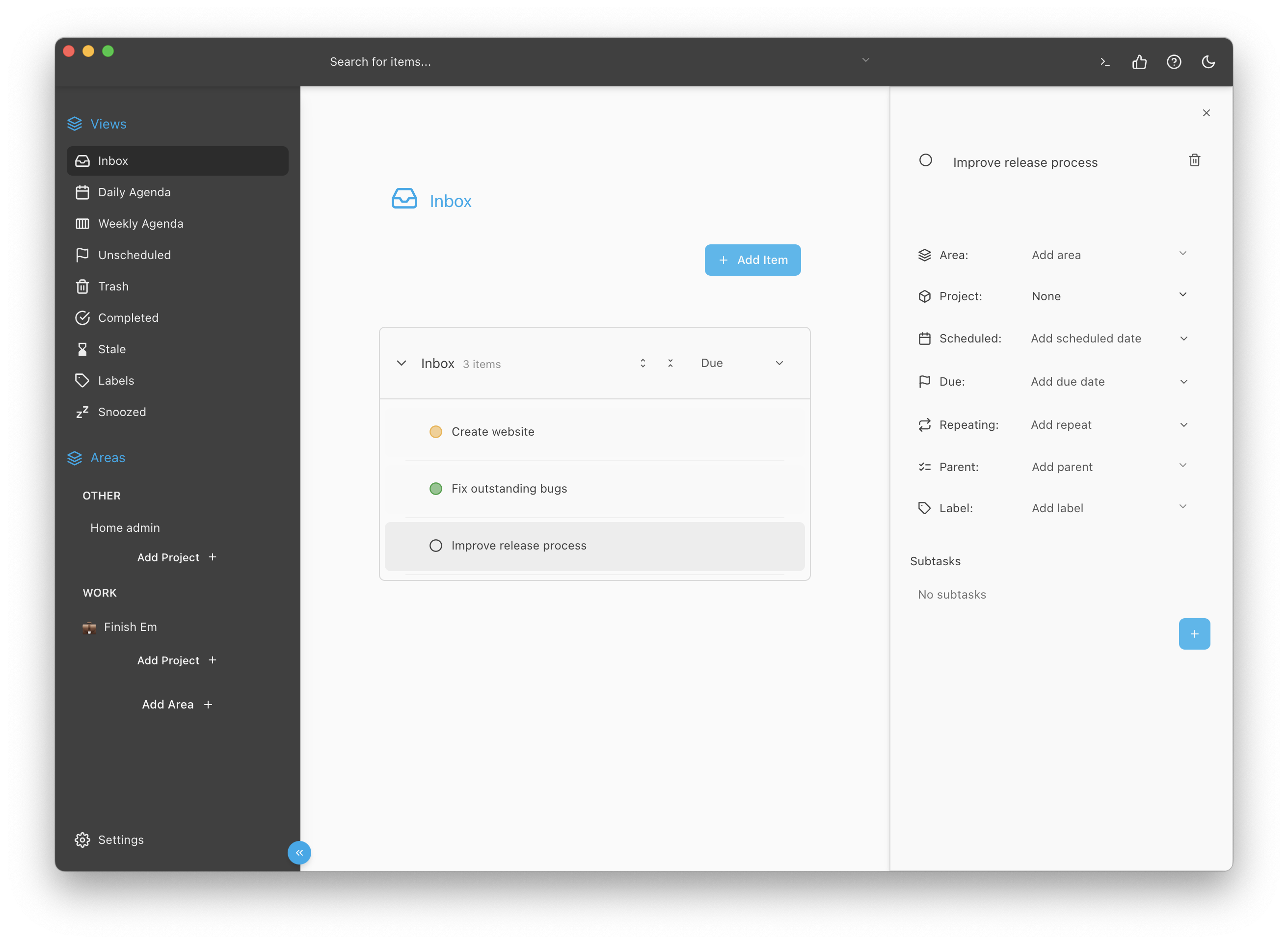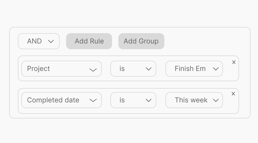 Create custom filters based on tasks due date, scheduled date, project and any other property of a task.