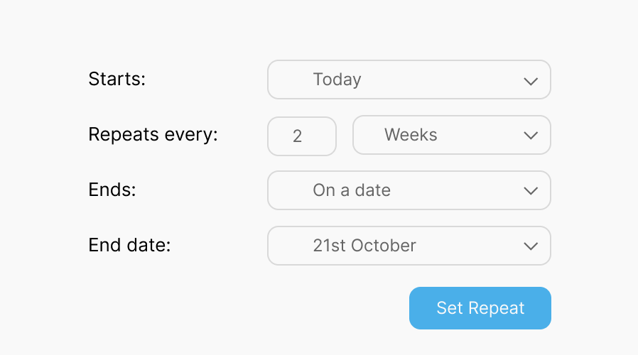 Never forget your repeating tasks, with flexible rules that fit any situation.